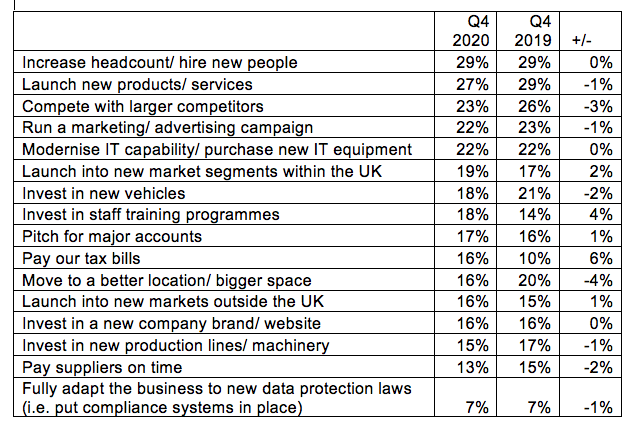 This comes as confidence among small businesses has steadily been returning since the outbreak of coronavirus. In Q4 2020, over a quarter (27%) said they expected to grow in the next three months, up from 13% in Q2 2020. Meanwhile, the proportion expecting to scale back fell in this quarter, also to 27%, down from 59% in Q2.